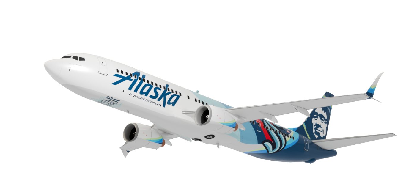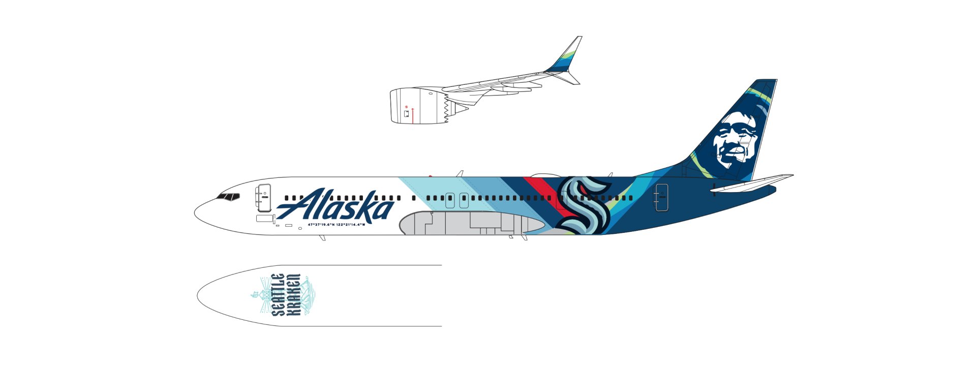 The Alaska Airlines plane with new Kraken livery will appear in a takeoff pose.