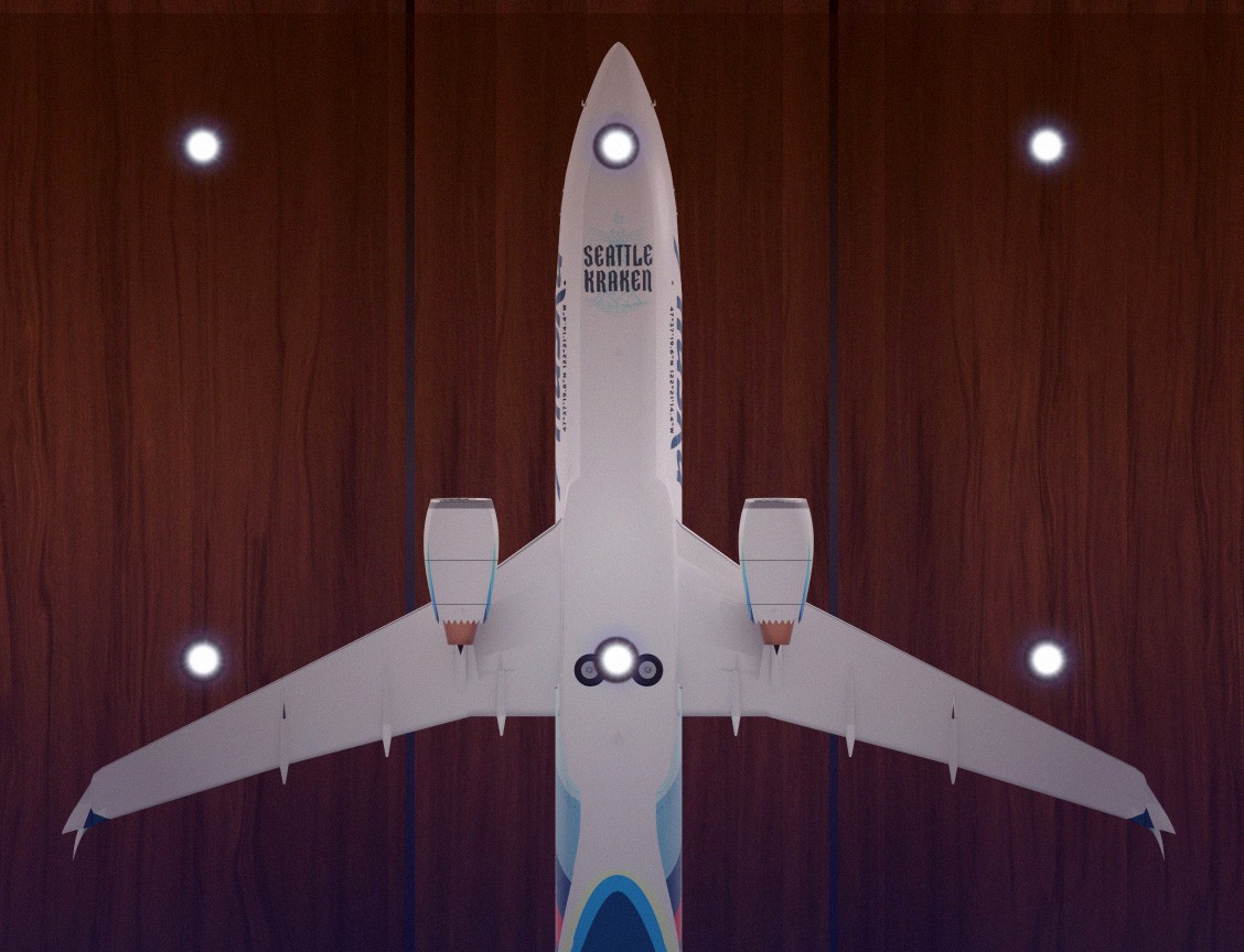 Final 3D renders of the aircraft with Seattle Kraken livery.