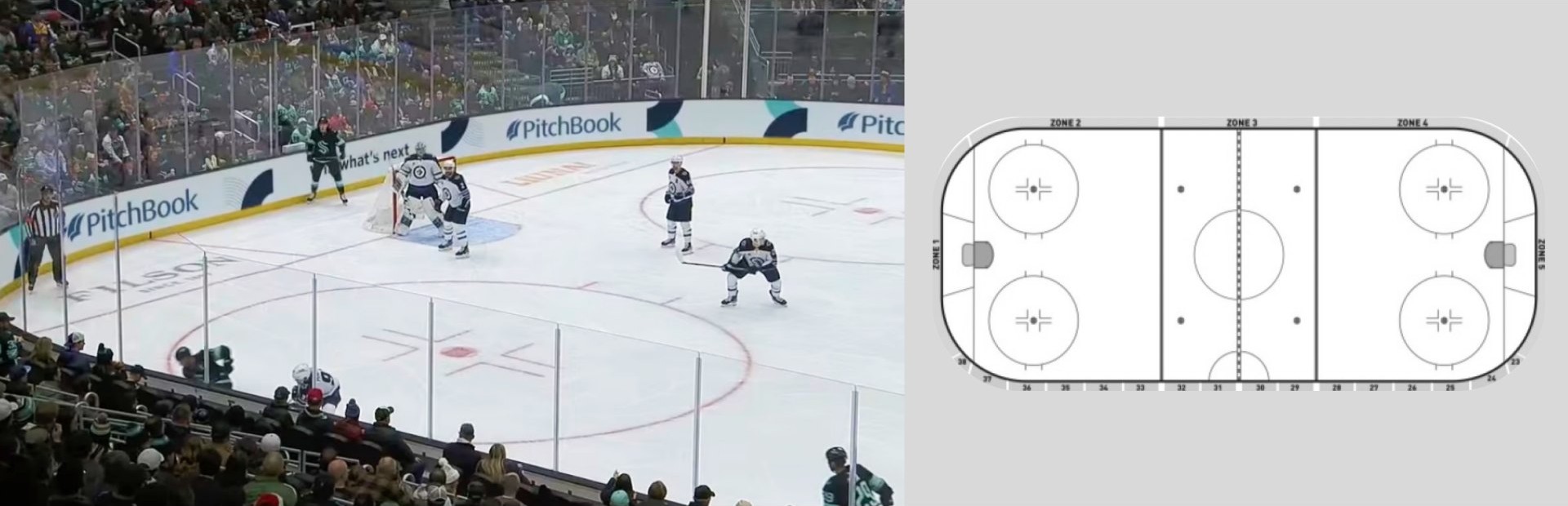 Large-format print of the Seattle Kraken plane flying overhead in an arena suite.