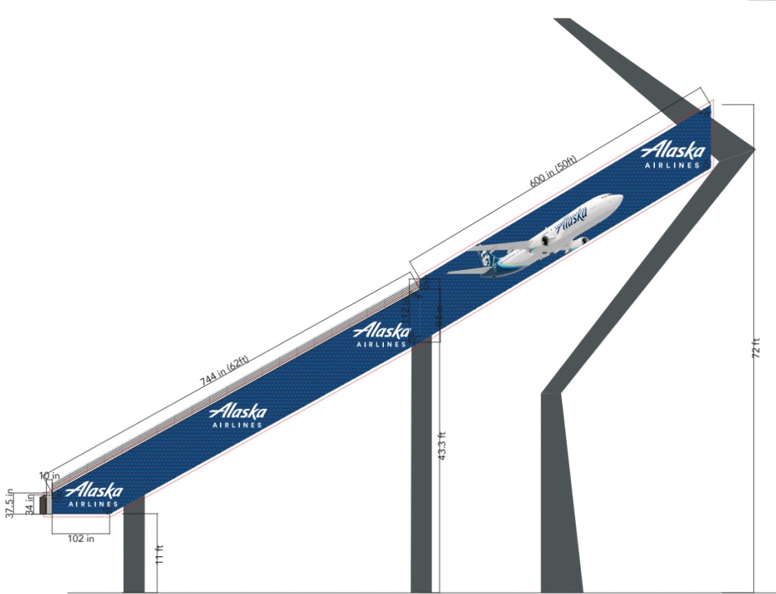 Around the rink of the Climate Pledge Arena, digital billboards will display Alaska Airlines advertising.
