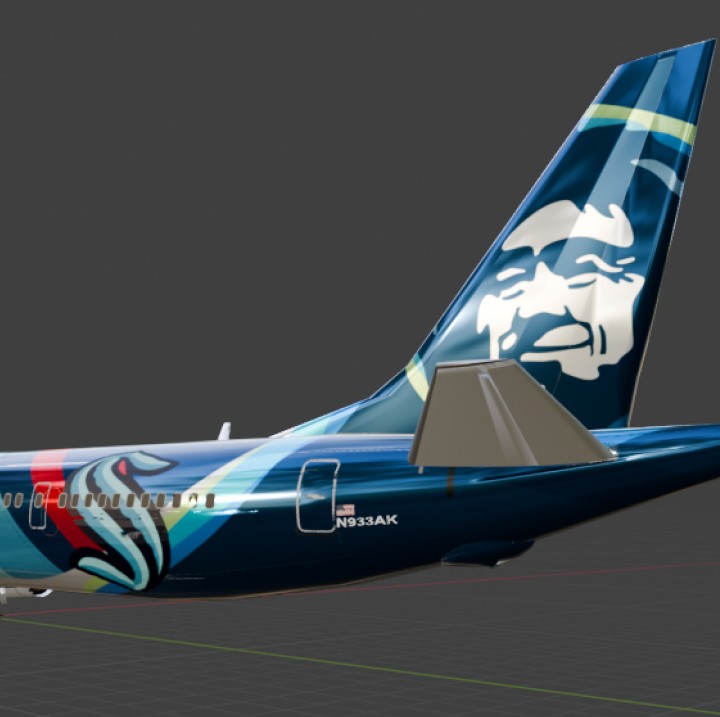 I was asked to follow up with a 3D model of an Alaska Airlines plane with standard livery. By quickly repurposing the Seattle Kraken model, I completed the second request in half the time. This would go on to be an even larger print to wrap the Snapdragon Stadium in San Diego, CA.